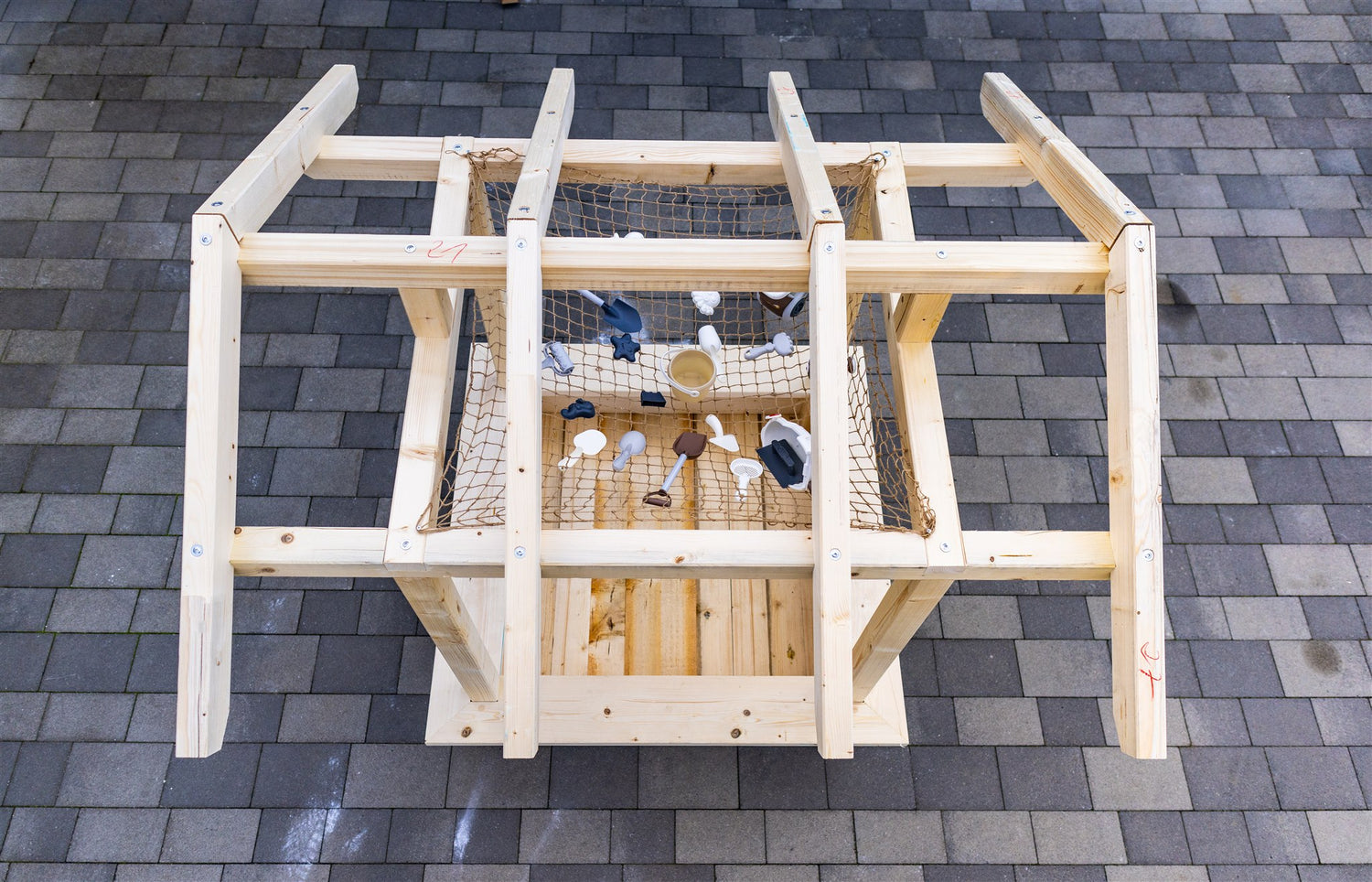 Schichtvollholzplatte ausgestattet werden, der das Sandspielzeug vor