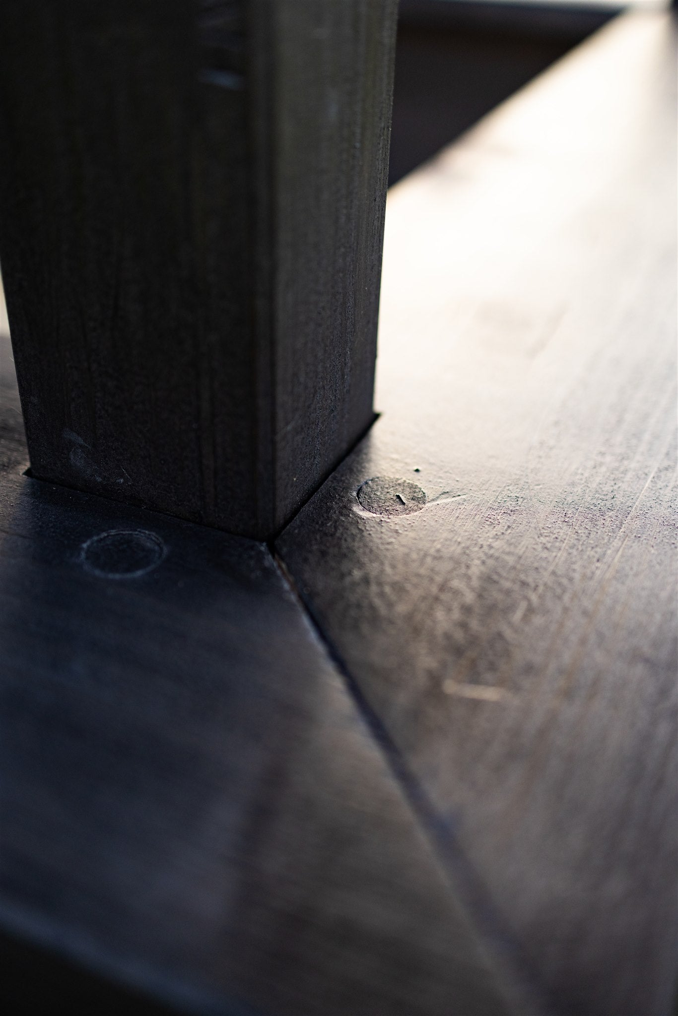 Die Verschraubungen sind eingelassen und werden mit kleinen Einsätzen verschlossen. Optisch ansprechend und es sammelt sich kein Sand oder Dreck in den Schraubenköpfen.