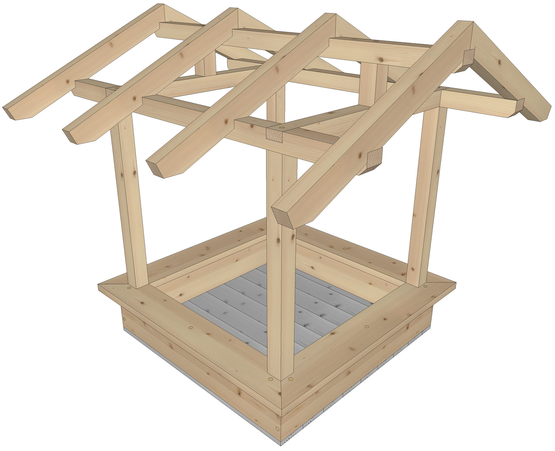 aus 40 mm starken Konstruktionsvollholz (KVH) Seitenwänden und