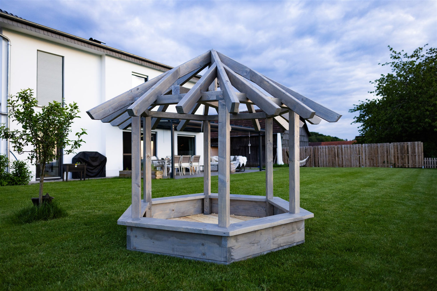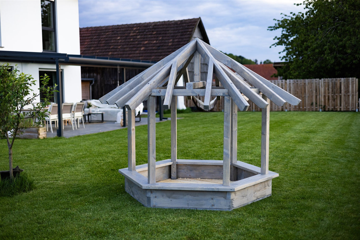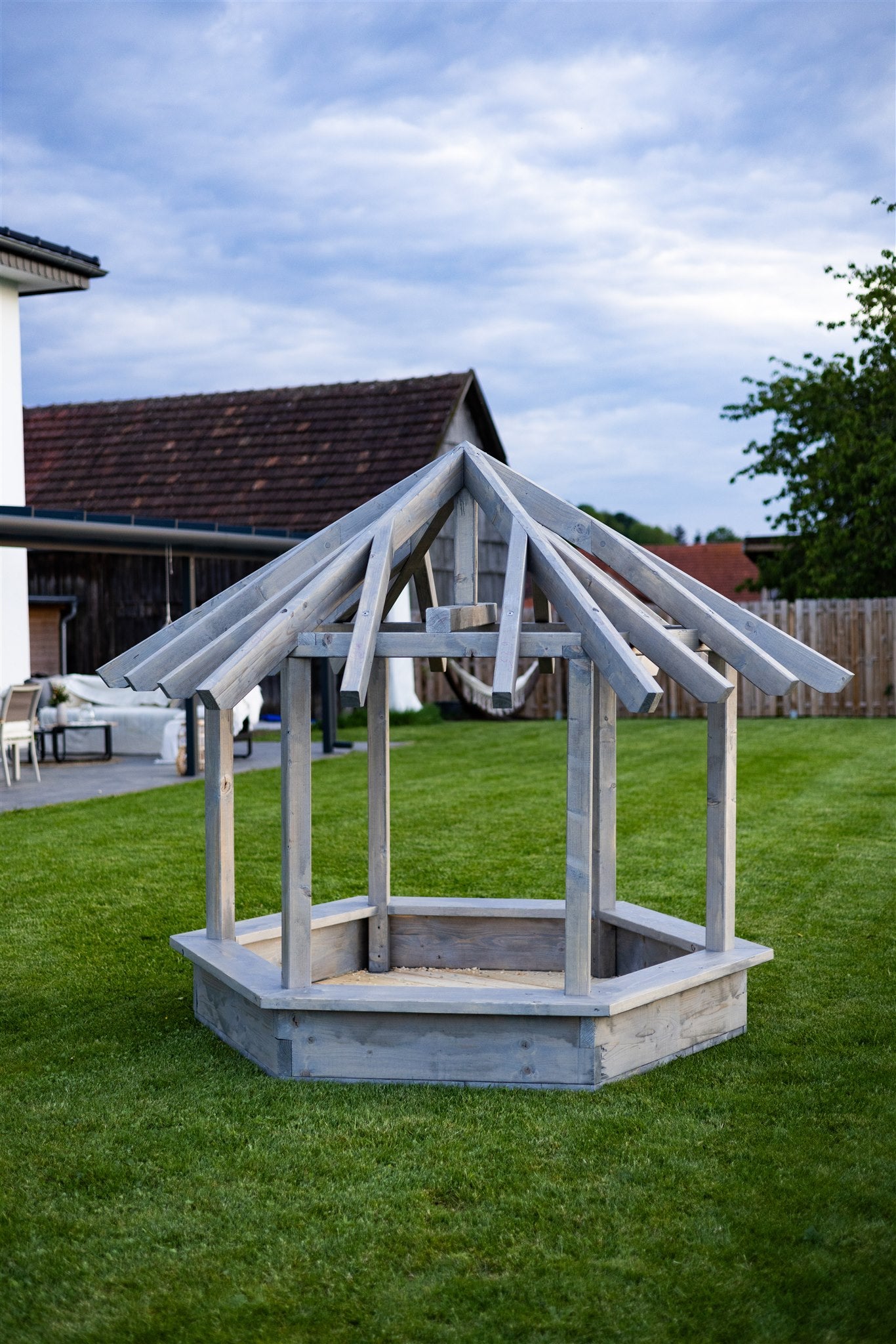 Durch die Sechseckform bietet der Sandkaten leicht Platz für 4-5 Kinder. So steht dem Spielenachmittag im Sandkasten mit den Freunden nichts mehr im Wege.